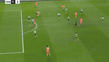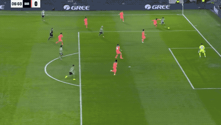 第11分钟,巴萨打出流畅配合,孔德下底传中,将球送到门前,费兰·托雷斯打进联赛第9球,位列射手榜的第二位。